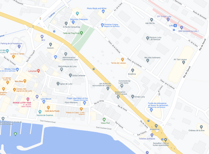 Mon atelier est près du bourg médiéval de Lutry. Il est très facilement accéssible par le train RER Vaud, ligne Lausanne Vevey, et par les lignes de bus tl : 9, 68, 69